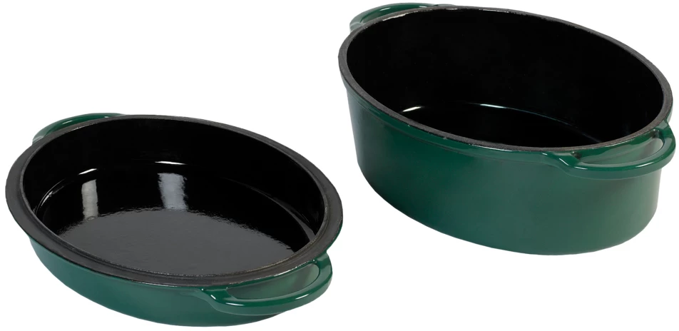 Der Big Green Egg ovaler Bräter aus emailliertem Gusseisen