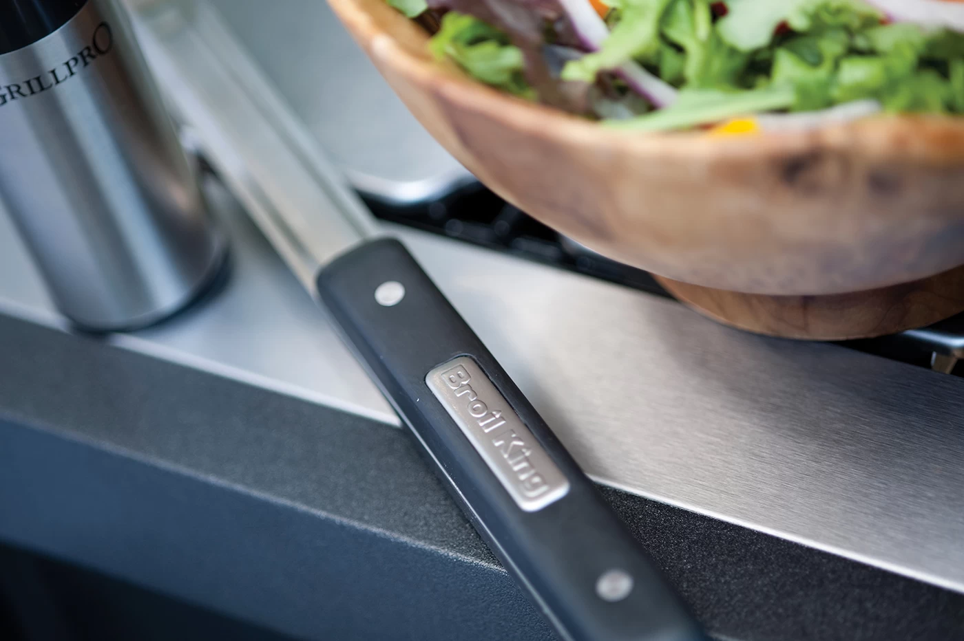 Das edle Grillbesteck Set von Broil King sieht aber nicht nur gut aus, es ist auch hochwertig verarbeitet. So wird für das Besteck 1,8 mm starker Edelstahl verwendet, der nicht nur langlebig sondern auch sehr hygienisch ist. Kombiniert wird der Edelstahl mit Griffen aus Kunststoff für einen angenehmen Griff.