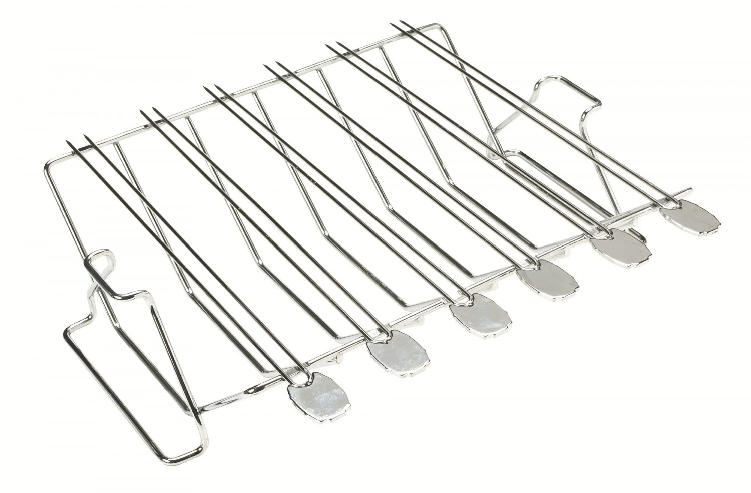 Die 6 Doppelspieße des Broil King Multigestells vermeiden das Verrutschen des Grillguts beim Wenden und auch Sie werden durch die Lagerung auf dem Spießhalter zum schonenden Garen entkoppelt. Saftige Grillergebnisse fast garantiert!
