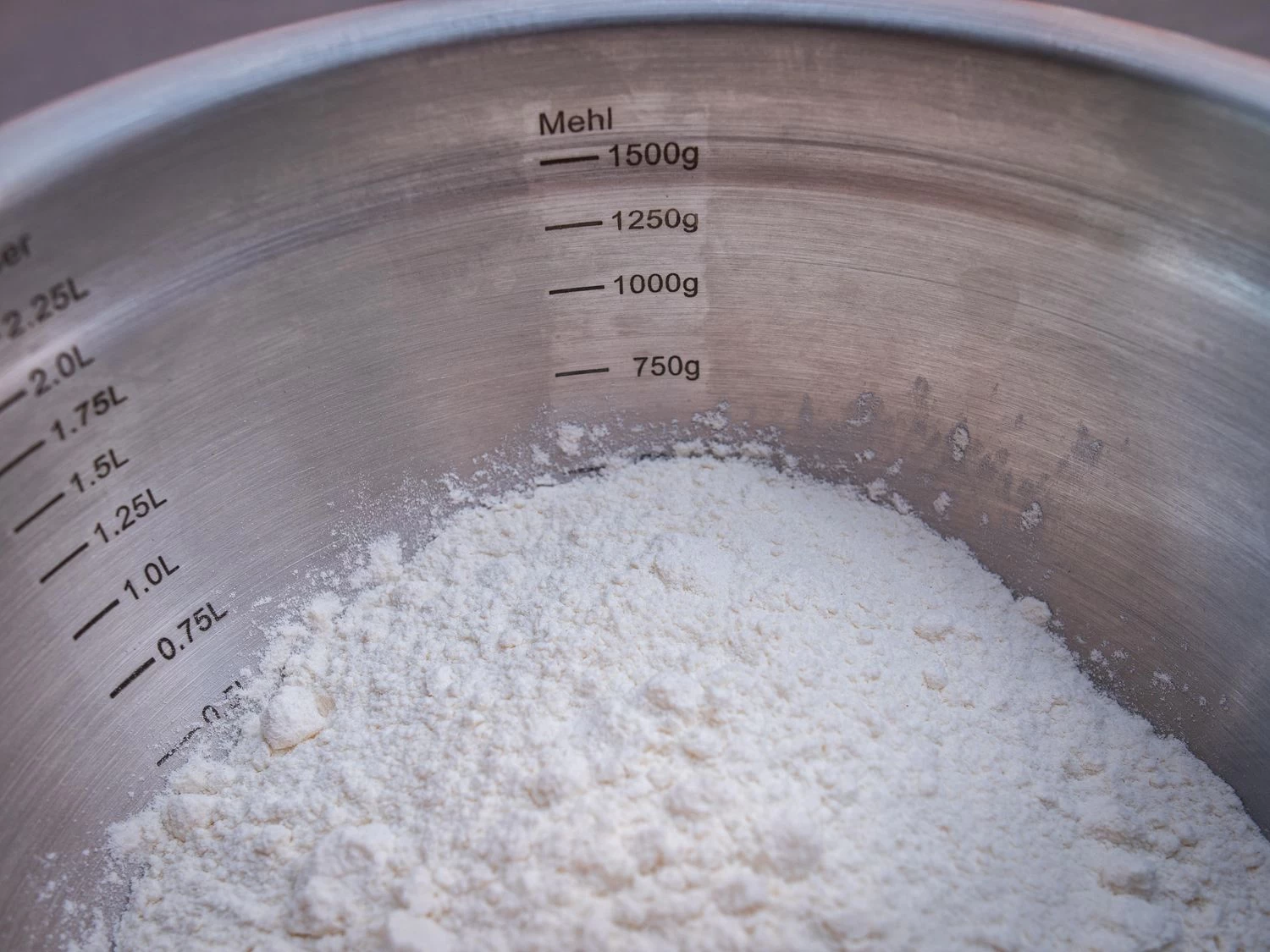 | Volumen Schüssel mittel: | Skala bis 2,25 Liter (Max. 2,6 Liter) |