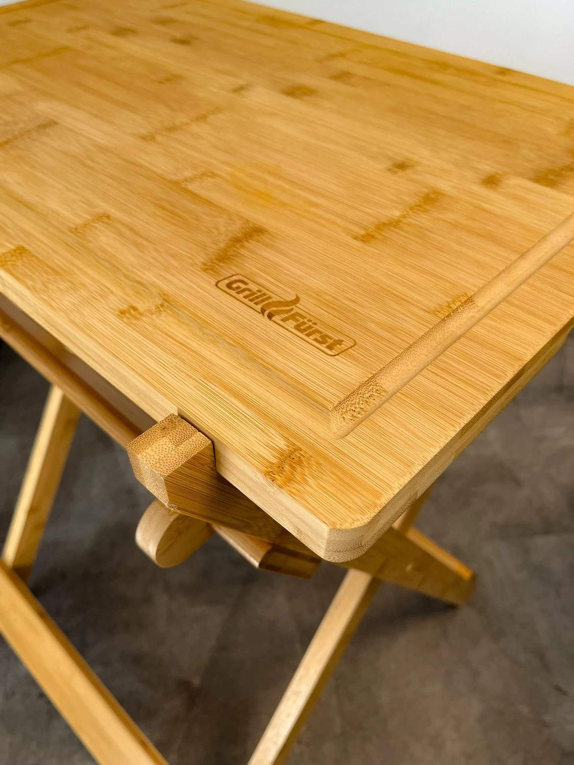 Der Grilltisch ist mit einem massivem abnehmbaren Bambus Schneidebrett ausgestattet, so dass Fleisch z.B. direkt tranchiert und samt Schneidbrett serviert werden kann. Wird er nicht benötigt kann der Klapptisch ganz einfach und platzsparend verstaut werden.