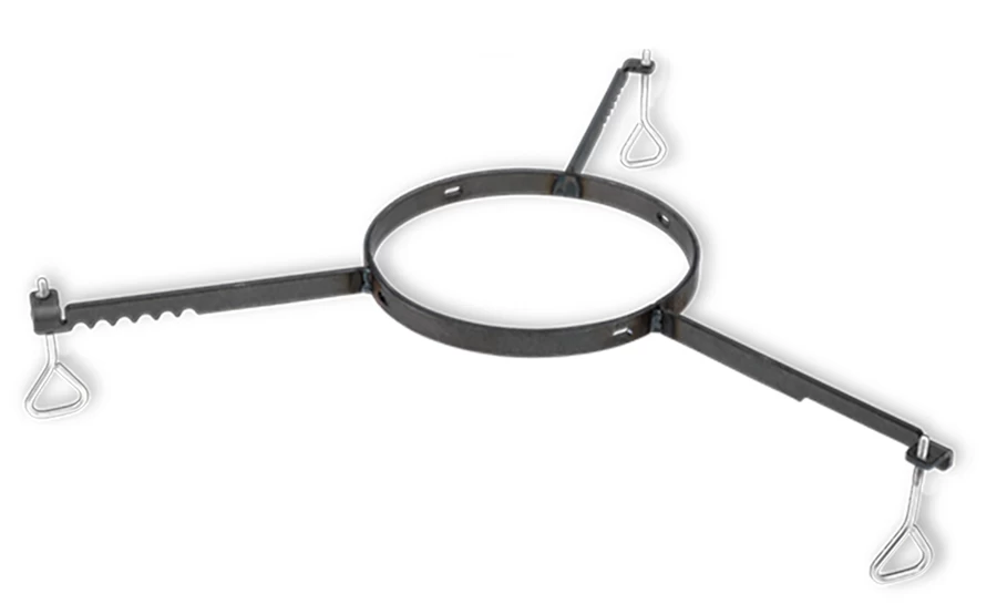 Der Höhenversteller passt auf Kugelgrills und Feuertonnen bis zu einem Durchmesser von 60 cm und ist natürlich auch mit dem Moesta Bandit Fireplace kompartibel.