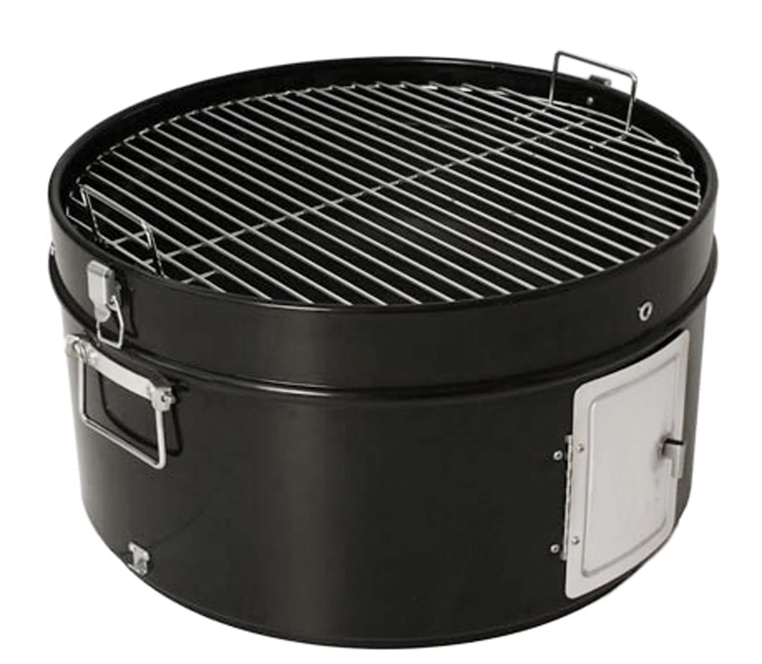 Mit jeweils zwei seitlichen Verschlussklammern wird der Aufsatz sicher mit dem Kessel und dem Deckel fixiert. Durch den Aufsatz erhalten Sie einen zweiten Grillrost. In jedem Aufsatzelement befindet sich eine dicht schließende Tür. Dank dieser Türen haben Sie leichten Zugang zu den Rosten, Wasserpfanne und zum Holzkohlekorb.