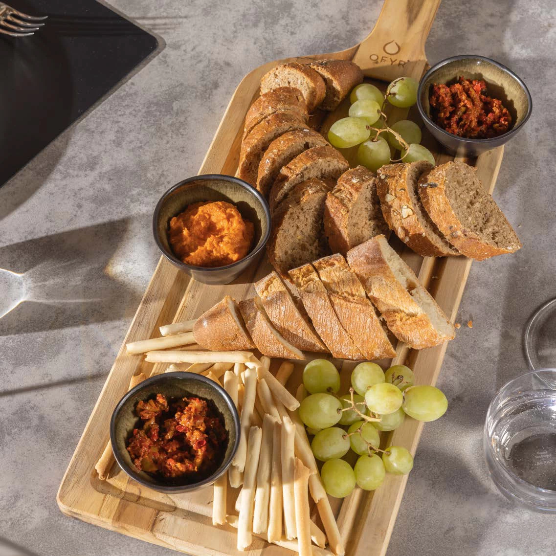 Auf den OFYR Servierbrettern lassen sich die fertigen Grillspezialitäten besonders stilvoll anrichten. Das Set besteht aus 3 hochwertigen Teakholzbrettern in unterschiedlichen Größen.
