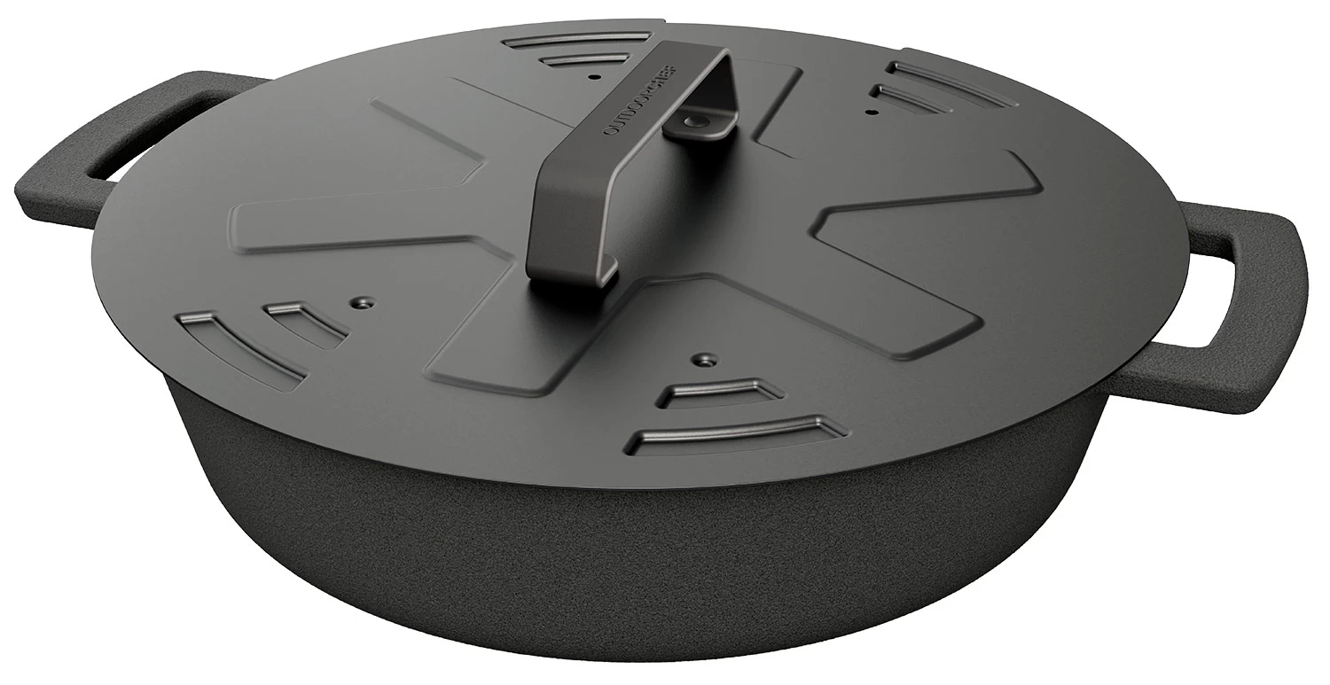 Der Deckel wird einfach auf die Pfanne aufgelegt und hält Hitze und Feuchtigkeit im Inneren. So lassen sich auch mit den Outdoorchef Pfannen leckere Schmorgerichte in Grill, Backofen, auf dem Herd oder einer Seitenkochstelle optimal zuzubereiten. Oder verwenden Sie den praktischen Deckel einfach als Spritzschutz beim Braten.