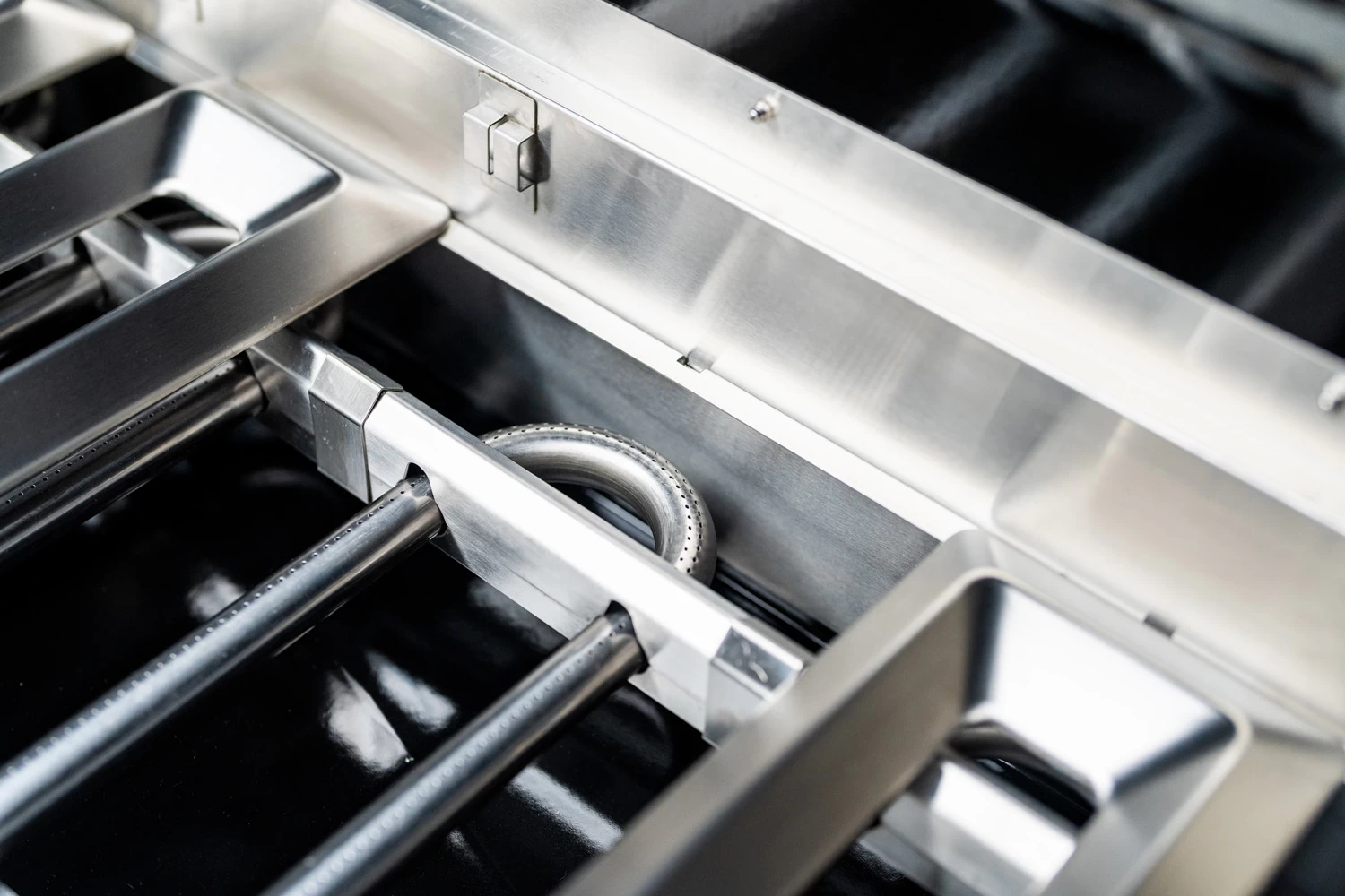 Eine weitere wichtige Aufgabe der Protection Bars besteht in der gleichmäßigen Wärmeverteilung der von den Brennern aufsteigenden Hitze. Dank der U-förmigen Bauweise der Brenner wird im Zusammenspiel mit den Protection Bars eine besonders gleichmäßige Hitzeverteilung auf der gesamten Grillfläche erzeugt – für erstklassige Grillresultate.