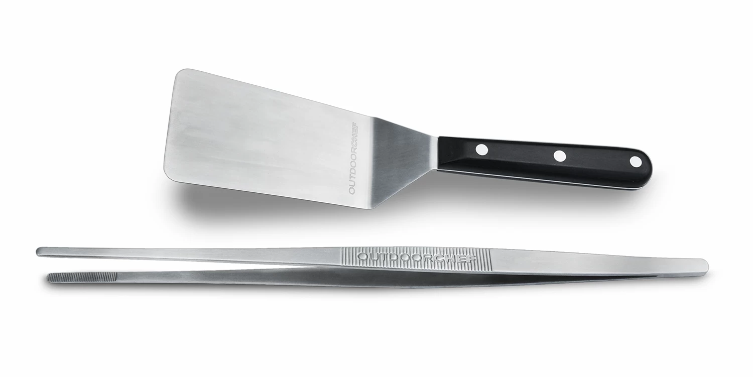 Mit dem Outdoorchef Plancha Tool Kit bestehend aus einer Grillpinzette und einem Grillwender sind Sie beim Plancha Grillen bestens gerüstet. Damit haben sie jedes Grillgut perfekt im Griff.