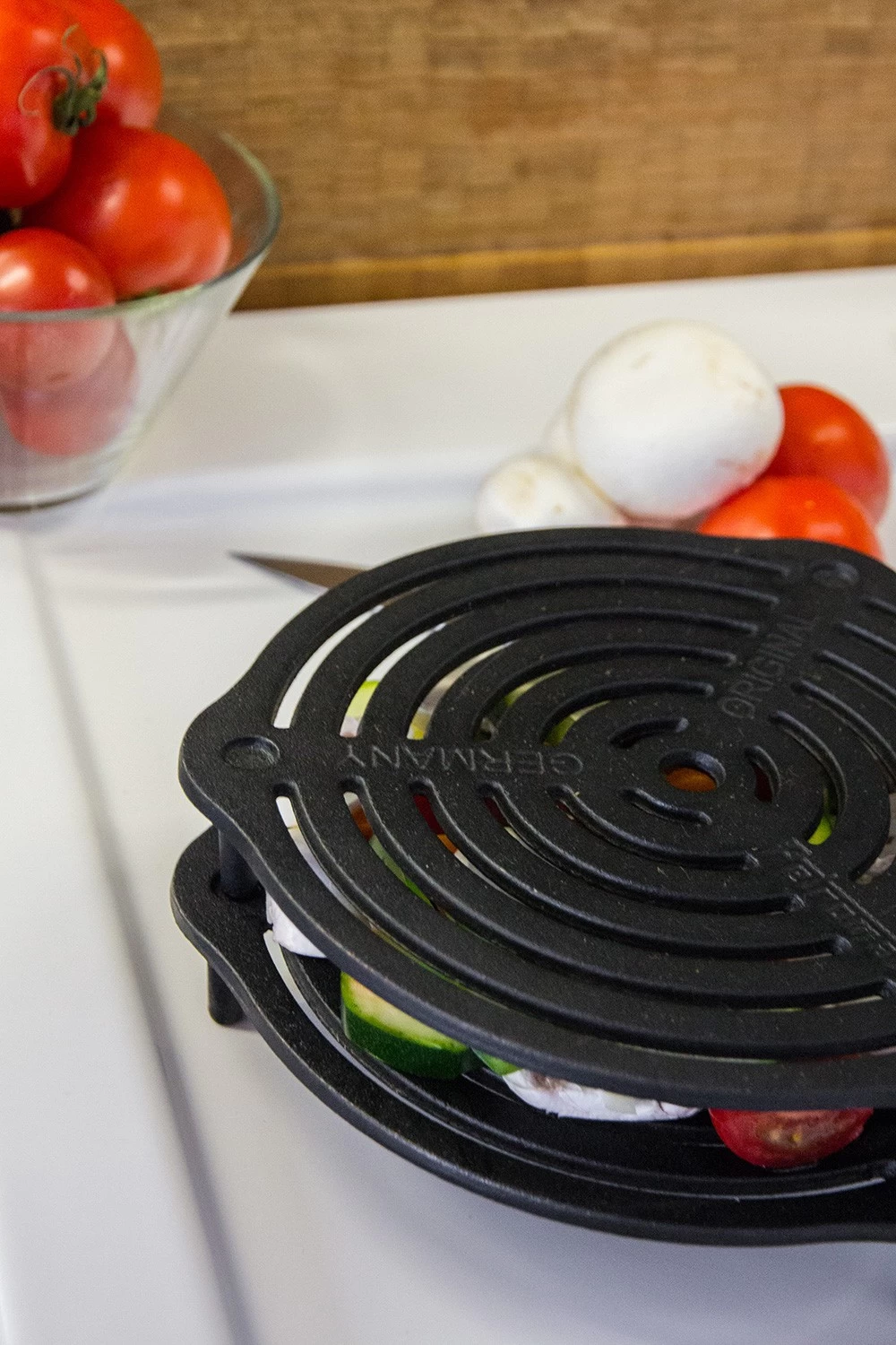 Der Petromax Stapelrost aus Gusseisen zum Dünsten und Dampfgaren auf mehreren Ebenen