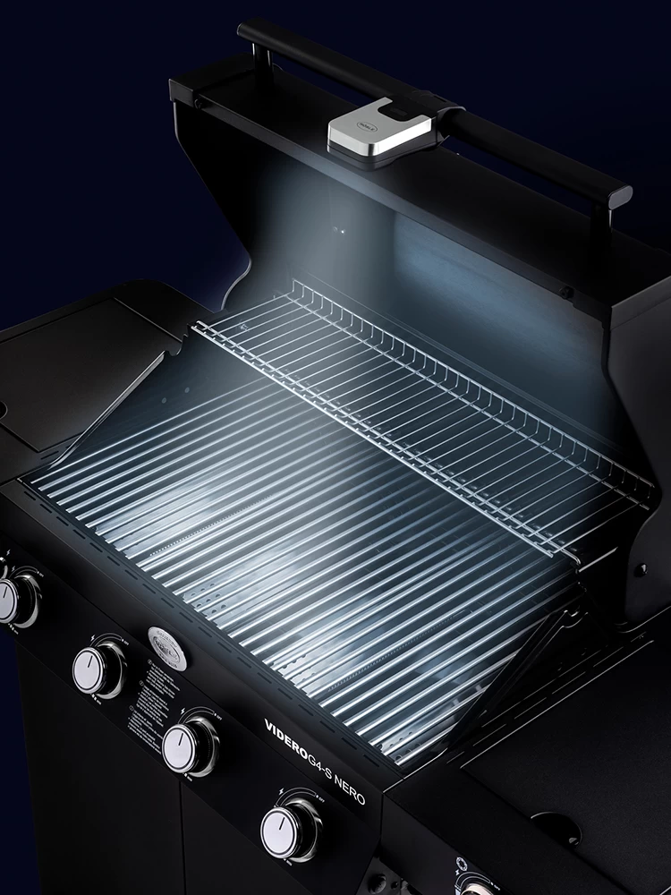 Mit der Rösle Universal BBQ LED Griffleuchte ist auch bei schlechten Lichtverhältnissen ihre Grillfläche immer optimal ausgeleuchtet. Das Grilllicht lässt sich ganz einfach mit einem strapazierfähigen Silikon-Gurt am Deckelgriff befestigen und passt nicht nur an die Rösle Gasgrills.