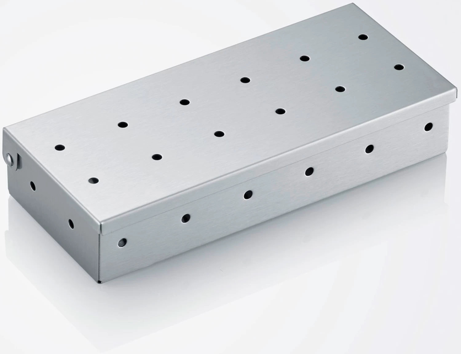 Die aus rostfreien und gebürsteten Edelstahl gefertigte Box ist besonders langlebig und überzeug durch Ihre Wiederverwendbarkeit und Langlebigkeit. Sie bietet Ihnen ausreichend Platz, um Räucherchips und passende Kräuter hinein zu legen und verleiht so Ihrem Fleisch einen angenehm Rauchgeschmack.