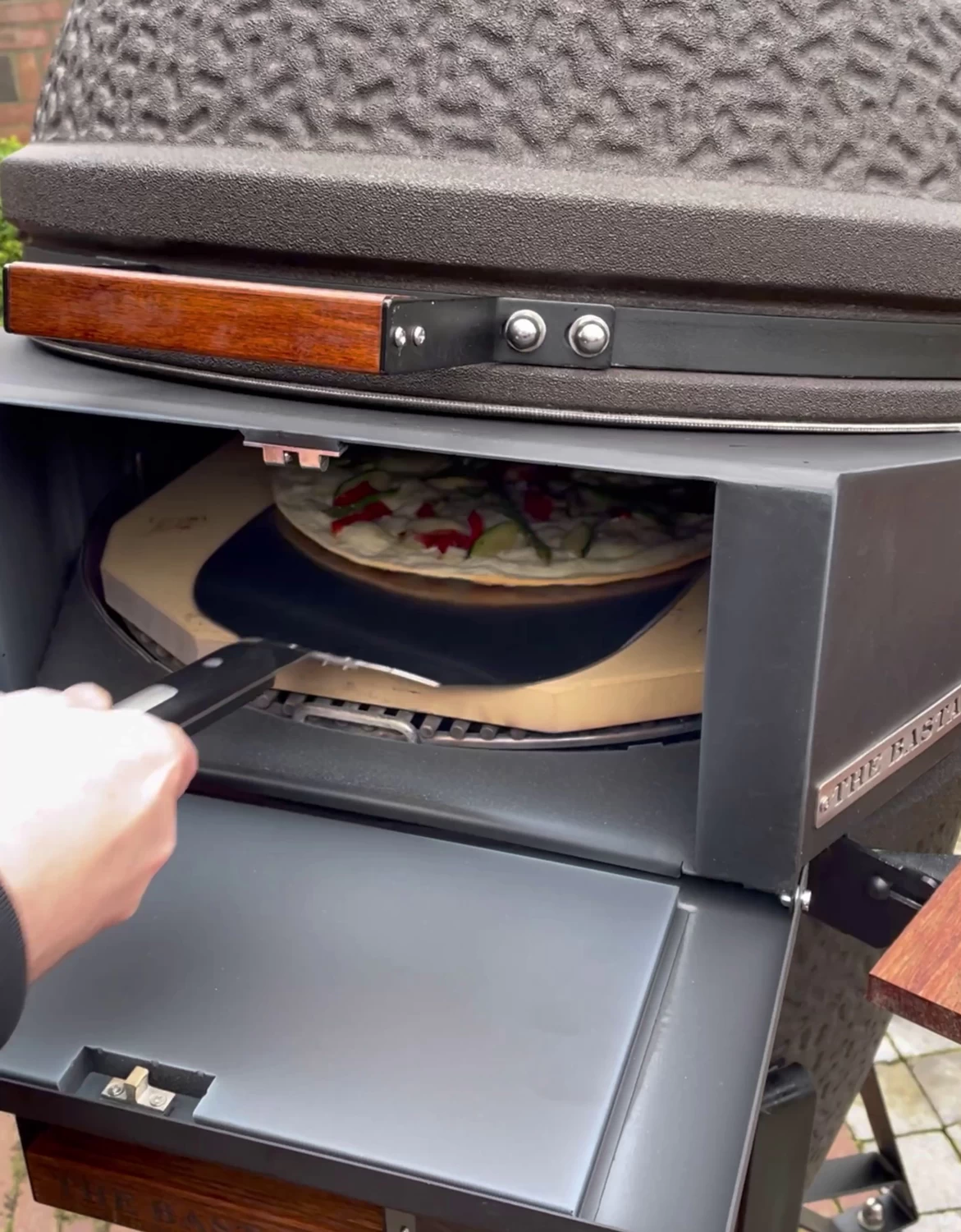 Mit der Bastard Pizzaschaufel aus Edelstahl befördern Sie Ihre Pizza mit Leichtigkeit in und aus dem Keramikgrill, ohne sich dabei die Finger zu verbrennen. So backen Sie Pizza wie ein Profi.
