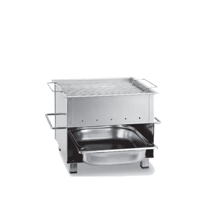 Der Thüros Minicater ist der kleine Bruder des Thüros Cater Gastrogrills und als professioneller Tischgrill konzipiert. Wie auch sein großer Bruder ist der Holzkohle Tischgrill aus hochwertigem Edelstahl gefertigt, leicht zu reinigen und langlebig. Highlight des Minicater ist der zusätzliche Warmhalte- und Garraum mit zwei Temperaturzonen.
